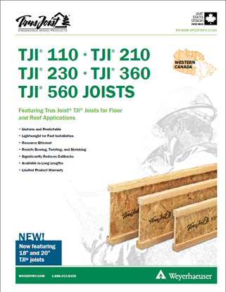 Trusses Truss Configurations Truss Terminology (PDF) Partition Separation Truss Quote Form I-Joist TrusJoist Specifier Guide (TJ-4500) TrusJoist – Installation Guide – Joists (TJ-9001) TrusJoist – Installation Guide – Deep Joist (TJ-9006) Bracing Temporary Bracing for Wood Web Floors Handling Erection Strongback Detail BCSI Bracing Other Western Archrib Glulam MiTek TrusJoist - Specifier Guide – Beams, Headers & Columns (TJ-9505)
